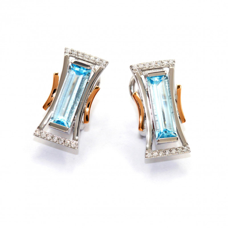 Earring - Blue Topaz/dia. 0,154 Ct. H/si